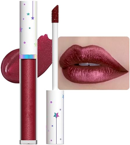 Dark Red Metallic Lip Gloss, Long Lasting Waterproof Liquid Lipstick 10#