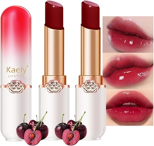Magic Lipstick Color Changing 2Pcs Set Black Red Cherry Tinted Lip Balm Gloss Stain