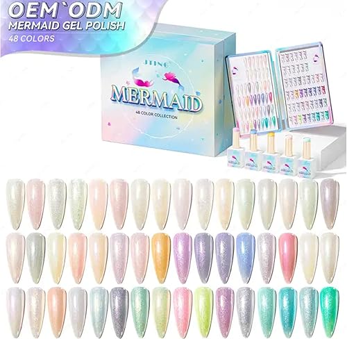 Mermaid Shimmer Gel Nail Polish Set with 48 Colors & Nail Guide Book